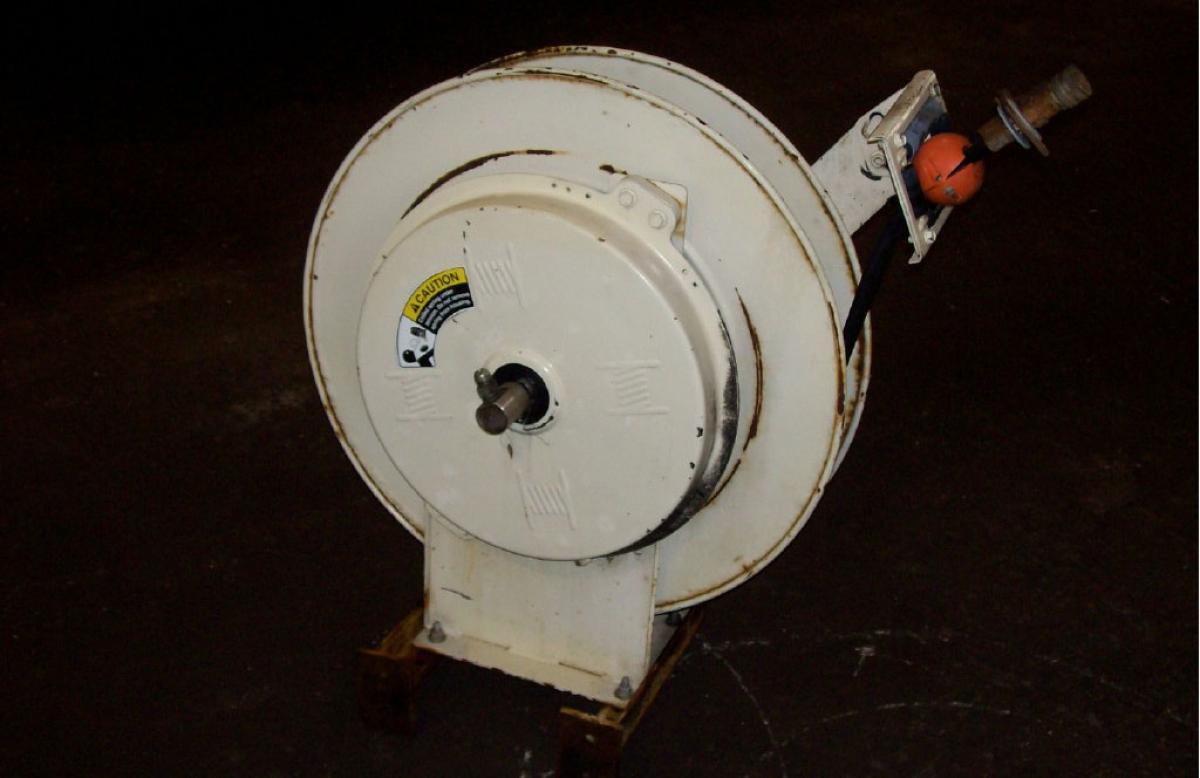 Used Hannay hose reel with 88' of twin hose, N-600 spring reel, 1/2" 90 degree full flow S.V. swivel and is a constant tension style reel. This reel was manufactured on 10/1997