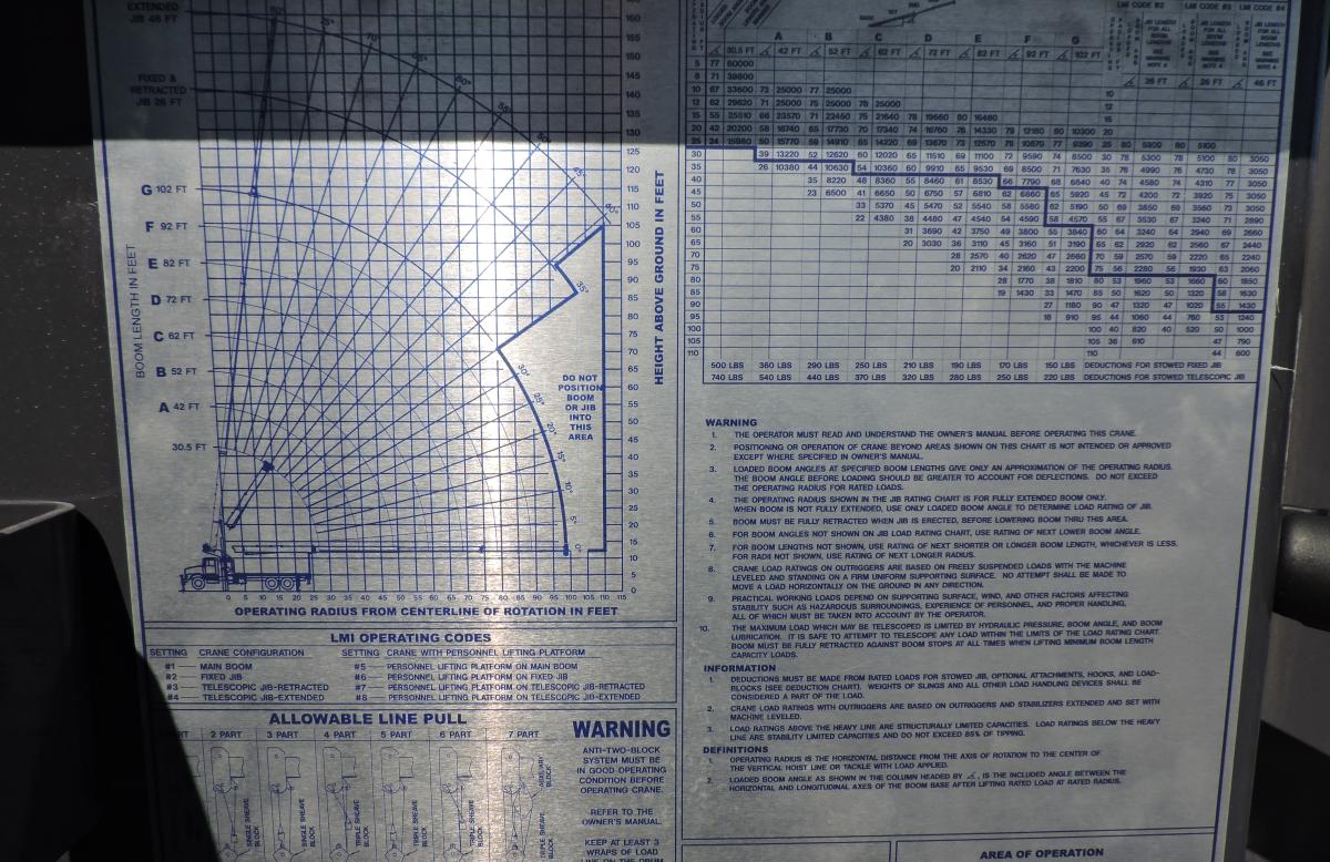- 102’ four section boom, - 112’ tip height
