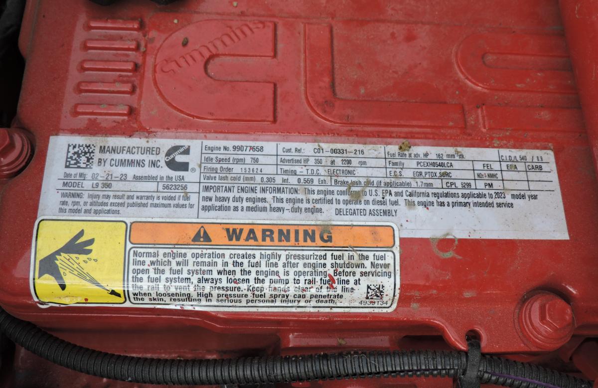 - Cummins L9 - 350 HP @ 2200 RPM, 1050 lb/ft @1200 RPM
