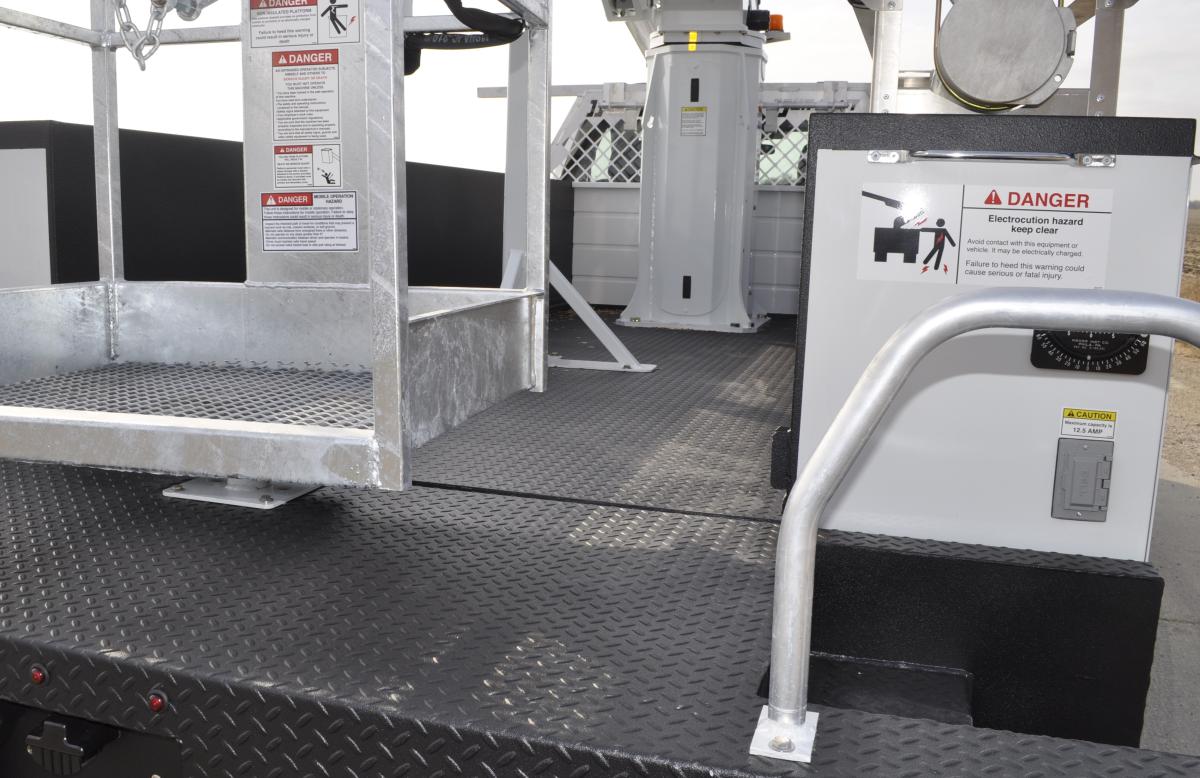 - Upper and lower basket-to-cab intercom communication system