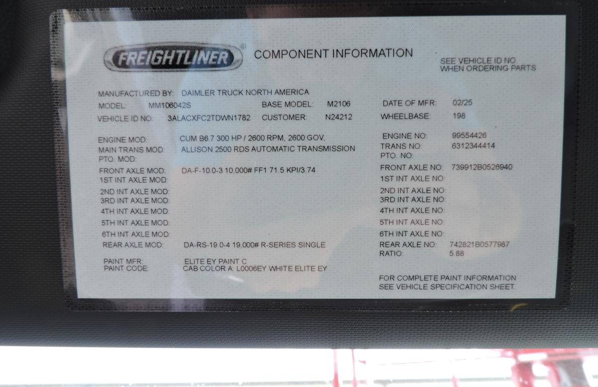 2026 Freightliner M2 106 Plus equipped as follows: