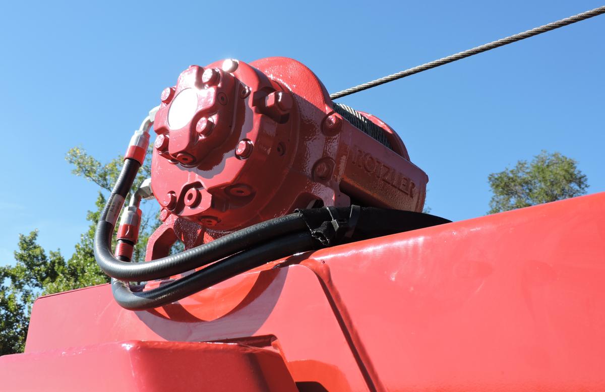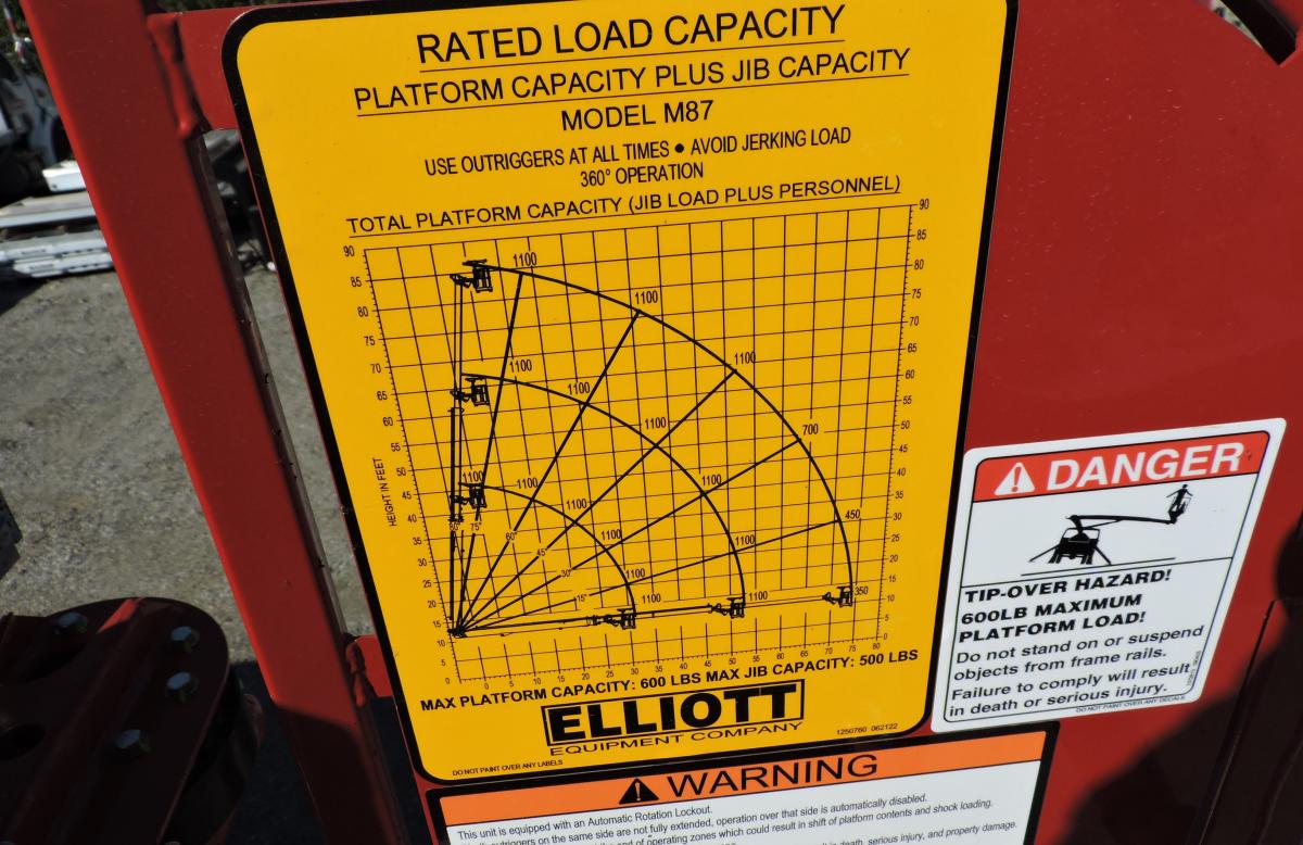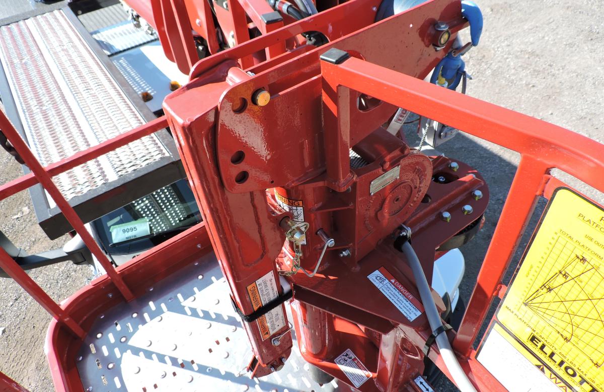 - Platform-mounted jib with hydraulic winch with 500 lb capacity. Stows in basket