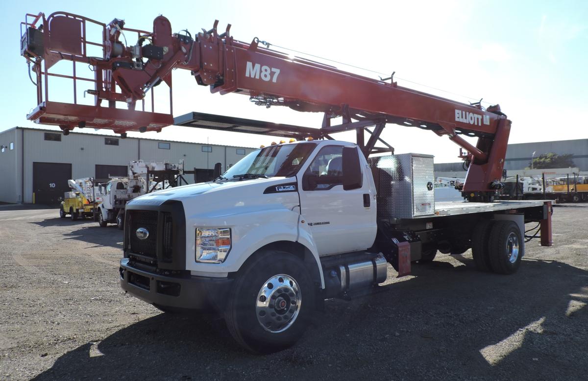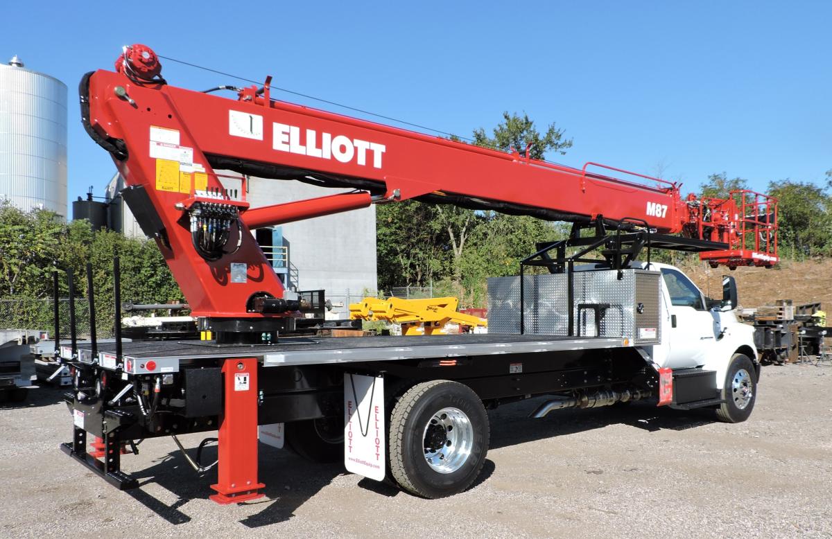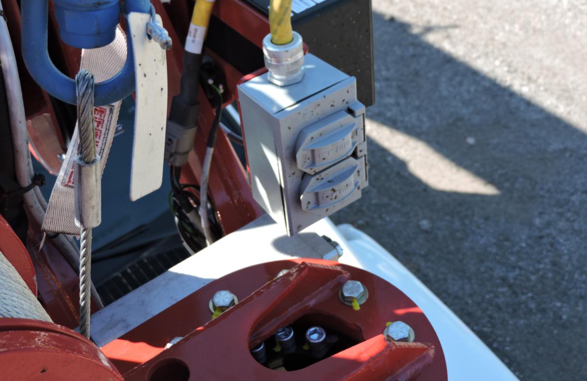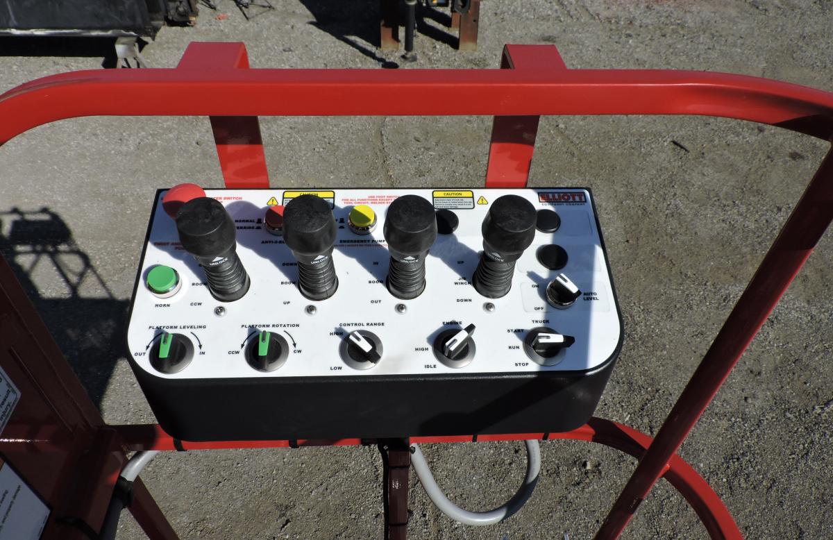 - Platform-mounted jib with hydraulic winch with 500 lb capacity. Stows in basket