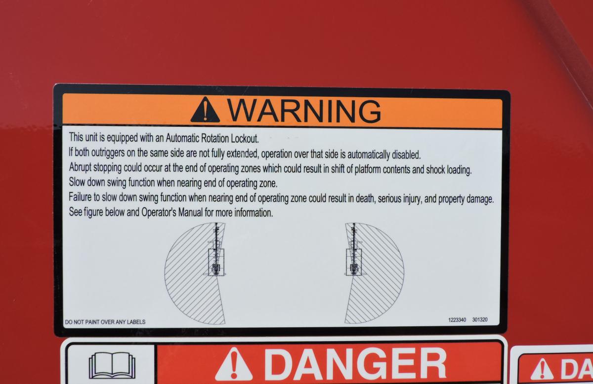 - Automatic rotation lockout-prevents boom from rotating to side where “MH” outriggers are not fully extended horizontally
