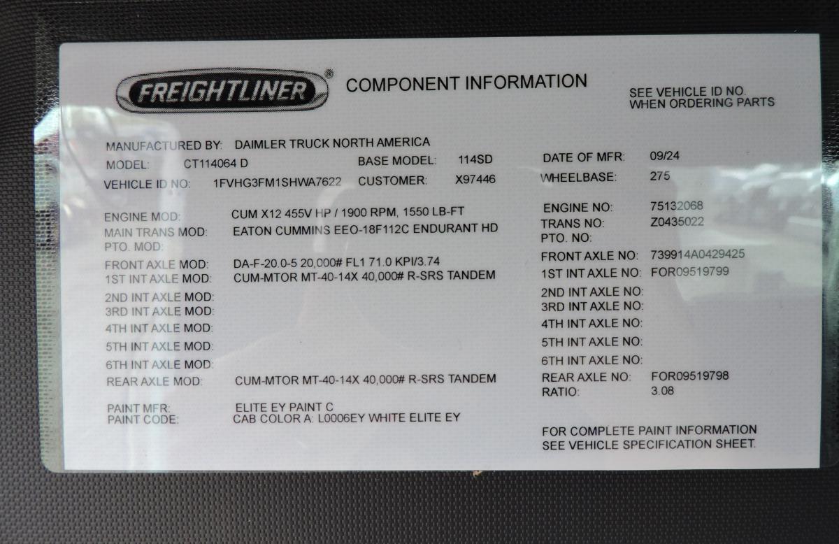 2025 Freightliner 114SD Plus equipped as follows: