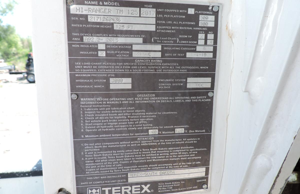 Terex TM125 bucket truck, 2016 Peterbilt 365